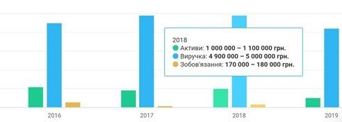 Зверніть увагу. Для цього та решти підприємств орбіти Гончара-Вовкодавів, характерні ознаки фіктивності. На це вказують мізерні активи та практично нульові зобов’язання (позначені зеленими та помаранчевими стовпчиками). Якщо порівняти пропорції виручки, активів та зобов’язань з будь-якою реальною компанією того ж роду діяльності, побачите діаметрально протилежну картину.