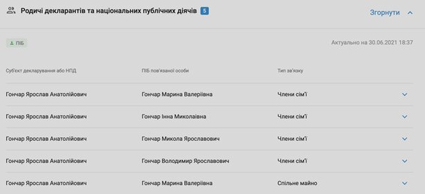 Проте навіть всевидяще око YouControl лишилося нечутливим до реальних родинних зв’язків Ярослава Гончара. Це не дивно. Платформа лише розвивається, поступово нарощуючи функціонал та поліпшуючи точність. Вона не завжди відображає всю потрібну інформацію. Для повноти картини доводиться вручну досліджувати багато деталей. Приміром на сторінці результату перевірки контрагента Ярослава Гончара позначені його близькі родичі.