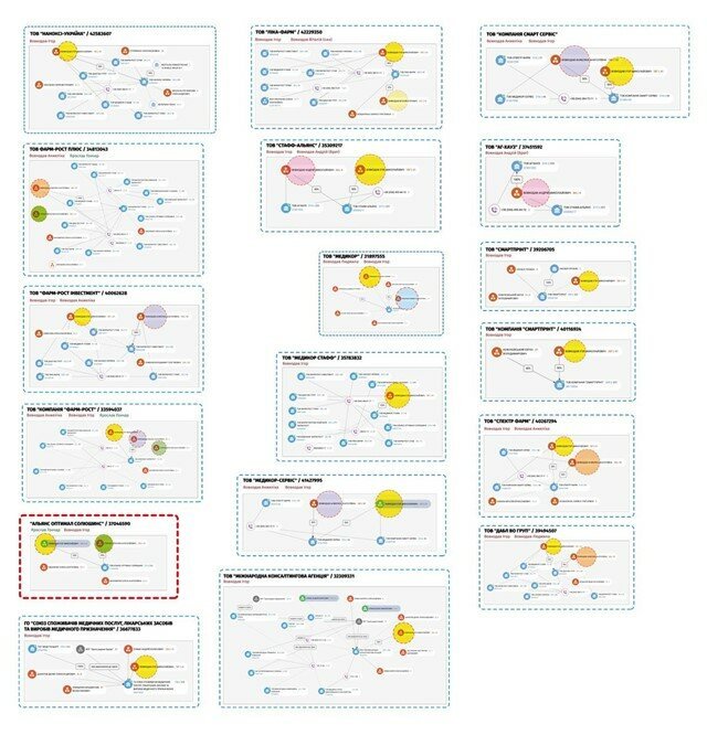 Що ж за клієнтів обслуговували ці чоботарі без чобіт або маркетологи без інструментів маркетингу? Їх перелік – в тій же ухвалі суду про вилучення предметів при обшуку в конвертаційному центрі. Зокрема серед клієнтів – важковаговики фармацевтичної галузі: