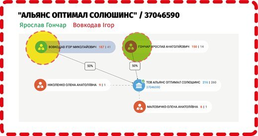 Проте навіть всевидяще око YouControl лишилося нечутливим до реальних родинних зв’язків Ярослава Гончара. Це не дивно. Платформа лише розвивається, поступово нарощуючи функціонал та поліпшуючи точність. Вона не завжди відображає всю потрібну інформацію. Для повноти картини доводиться вручну досліджувати багато деталей. Приміром на сторінці результату перевірки контрагента Ярослава Гончара позначені його близькі родичі.