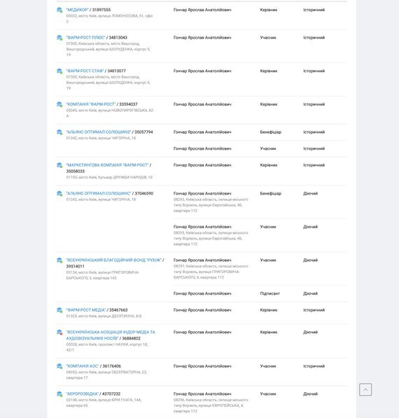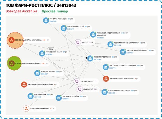 Ці три фігурують у кримінальній справі про організацію конвертаційного центру. А взагалі-то ФАРМ-РОСТів більше. Аби потрапити пальцем в небо, тобто у сімейну пральню Вовкодава-Гончара, просто додавайте до словосполучення ФАРМ-РОСТ різні іноземні слова з бізнес-лексикону. Інвест? Звісно – ФАРМ-РОСТ ІНВЕСТ. Стаф? Авжеж – ФАРМ-РОСТ СТАФ. Маркетинг? А як же без нього в офшорі – МАРКЕТИНГОВА КОМПАНІЯ "ФАРМ-РОСТ”. Туди ж і “МЕДІА”, хоча надто заплутано та каламутно.
