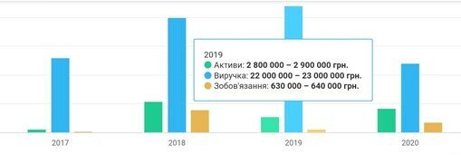 Зверніть увагу. Для цього та решти підприємств орбіти Гончара-Вовкодавів, характерні ознаки фіктивності. На це вказують мізерні активи та практично нульові зобов’язання (позначені зеленими та помаранчевими стовпчиками). Якщо порівняти пропорції виручки, активів та зобов’язань з будь-якою реальною компанією того ж роду діяльності, побачите діаметрально протилежну картину.
